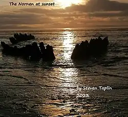 On 1 February 1897 she set sail from the Port of Bristol, England, bound for Brunswick, Georgia. Having loaded a cargo of resin and turpentine, the Nornen set sail back to Bristol. During the night of 2/3 March, a major storm battered the coasts of south west England. Captain Olsen made an attempt to shelter in the lee of Lundy Island, but this was in vain. With sails torn, the crew were powerless against the rough swells and driving sleet. Other vessels in the Bristol Channel also suffered, and were saved, but the Nornen drifted north-westward, eventually running aground on Berrow Beach, Berrow, Somerset.[3]