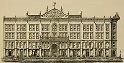In 1866, he opened the Merchants' Bank of Watertown, which was incorporated as a stock company in April 1870, and he became CEO. In 1869, he purchased a cotton factory in Factory Square, and he began extensive improvements to the square.[4] The Carthage, Watertown and Sackets Harbor Railroad began construction in 1872 with Winslow as a director.[2] In 1873, he built the Winslow Block, a building in the Public Square in Watertown.[2] The building was acquired by W. W. Taggart in 1877, and was renamed to the Taggart Block.[5] On July 10, 1919, the building was destroyed by a fire with a loss of $300,000, equivalent to $5,440,883 in 2024.[5] Winslow built almost 100 buildings in the southeastern portion of Watertown.[1]