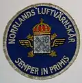 In 2000, the Norrlands luftvärnskårs (Lv 7) minnesmedalj ("Norrland Anti-Aircraft Corps (Lv 7) Commemorative Medal") in silver (NorrllvkSMM) of the 8th size was established. The medal ribbon is of white moiré with a red stripe on each side.[12]