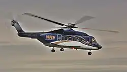 Operations commenced on 14 June 2012, with an AgustaWestland AW139 leased from Bond and operated with ad hoc flights on the British sector.[2] A joint order between Bond and NHS was made for sixteen Sikorsky S-92A helicopters, eight to each company. The first two were delivered to NHS in February 2013, and the original order was scheduled to run until 2017.[1] The aircraft were contracted to Bond, who at the time had their fleet of Eurocopter EC225 Super Pumas grounded. The two S-92s were based at Aberdeen Airport and crewed by NHS employees.[3]