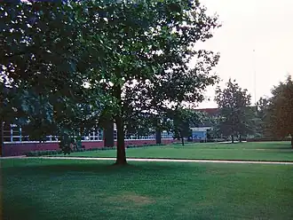 The school opened in 1954 as the North Allegheny Junior-Senior High School with 33 classrooms for grades 7-12.[3] The design of the building was award-winning in its time, with distinct features include six letter-coded sloping hallways (or ramps) and most classrooms divided by outdoor courtyard spaces (unusual in school design for the time period). The building was expanded further in 1957 and 1963, adding classrooms in the rear of the building. The building became North Allegheny Senior High School (NASH) for grades 11-12 in 1969 upon the opening of Thomas E. Carson Intermediate High School (now Carson Middle School). The building assumed its current role as the Intermediate High School for grades 9-10 in 1974, when the new and current Senior High School in Wexford opened. A major renovation in 1997 expanded the building through the addition of the lower gym, larger cafeteria, and new front wing addition. The most recent renovation to the facility was completed in 2017.[4]