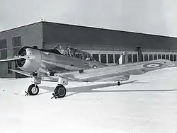 The remaining 119 undelivered aircraft were bought up by the British Purchasing Commission and transferred to the Royal Canadian Air Force (RCAF) for the British Commonwealth Air Training Plan between August and September 1940,[2] and all were operational by November[5] The type was named the Yale Mk.I[note 1] following British naming practice of naming trainers after education institutions and US-supplied aircraft after American locations, in this case, Yale University, and were used initially as intermediate pilot trainers taking pilots from the de Havilland Tiger Moth and Fleet Finch to the much faster and more complex North American Harvard,[4] until this category was dispensed with as being unnecessary. They were then relegated for use as airborne wireless radio trainers, along with the contemporary Fleet Fort intermediate trainer in 1943.[6][7] Prior to service entry, the throttle and engine mixture controls were modified from the system used by the French whereby the throttle was pulled back to increase power, and the mixture control pulled back to lean out the mixture, to the system used on the Harvard.[5] The Yale appeared in the movie Captains of the Clouds. The RCAF sold all surviving examples off as scrap in 1946 but over 30 survive today as a result of a large number of them being bought surplus by a single farmer, with about 15 currently in airworthy condition.