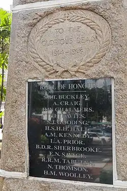 - ^ "Borneo's War Memorial". The Singapore Free Press and Mercantile Advertiser (1884-1942). National Library of Singapore. 9 May 1923. p. 7. Retrieved 21 September 2014.