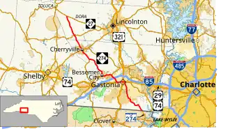 North Carolina Highway 274 (NC 274) is a primary state highway in the U.S. state of North Carolina. It connects rural areas of Lincoln and Gaston counties to Gastonia.