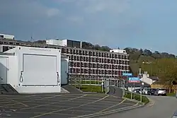 The hospital has its origins in the North Devon Infirmary established in Litchdon Street in 1824.[1][2] Services were transferred to the present facility which occupies the site of the historic manor house of Raleigh, in the former parish of Pilton, seat of the locally influential Chichester family.[3] The building of the hospital was promoted by Jeremy Thorpe when he was MP for Devon North and it opened at its present location in 1979.[4]