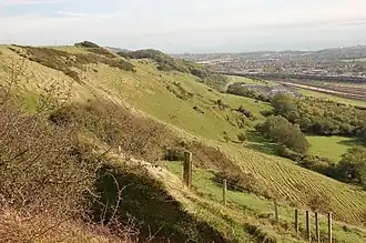 The North Downs near the entrance to the Channel Tunnel in Folkestone | |