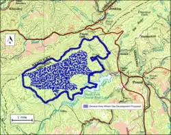 The area is subject to gas development with one developer proposing over 20 wells. Opposition to the development of gas walls has been unanimous approved by the Wise County Board of Supervisors.[2]
