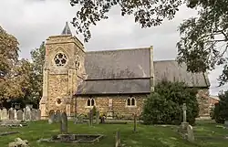 North Hykeham Church was first mentioned in 1160 but, by 1535 it was a 'free chapel', and by 1700 a ruin. From 1700 there was no church in North Hykeham. All Saints Church, consisting of nave, south aisle, chancel and tower, was erected on a new site in 1868, at a cost of £1200.[5] A Methodist Chapel was built in 1881. In 1894 the first Parish Council was established and met in the village school. In 1948 the Parish Council moved to the Memorial Hall ('The Tin Tabernacle') on Newark Road. The present Memorial Hall was built in 1969. In May 2006 the Town Council moved to its new premises in Fen Lane, an extension of an existing pavilion.[6]