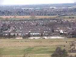 The windmills featured on the town crest are a reference to the two ancient windmills that once stood in the town, with each being owned by one of the two manors. The first mill was of a brick-built construction and was part of 'Ladds Mill' which was located on what is now known as Mill Lane (hence the name).[4]