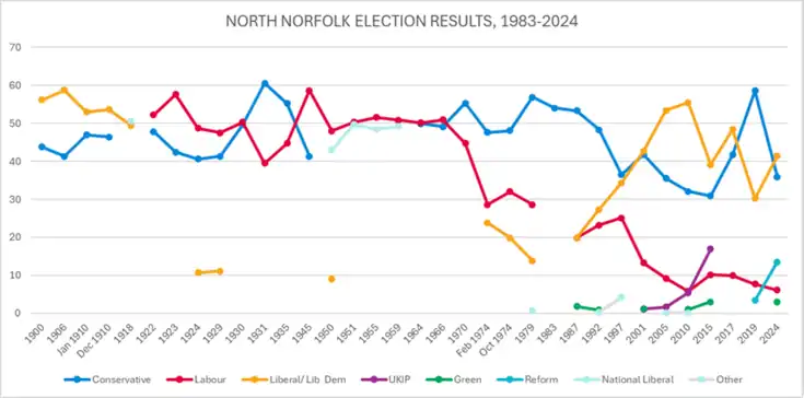 Sir Norman Lamb did not stand for re-election. The seat saw the largest decrease in the Liberal Democrat vote share at the 2019 general election,[14] and the third highest increase in vote share for the Conservatives.[15]