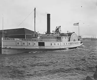 North Pacific was an early steamboat operating in Puget Sound, on the Columbia River, and in British Columbia and Alaska. The vessel's nickname was "the White Schooner" which was not based on the vessel's rig, but rather on speed, as "to schoon" in nautical parlance originally meant to go fast.[1]