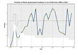 Chart of yearly table positions for North Queensland Cowboys in First Grade Rugby League