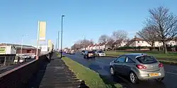 A large council estate, Meadow Well (alternatively spelt Meadowell or Meadowwell on local signs) to the west of the town, was constructed in the 1930s to house residents displaced by the clearance of the Dockwray Square and Low Town slum areas.[15] These flats were replaced with better quality homes in the 1960s and 70s.[16] Meadow Well was formerly known as the Ridges[17] Estate – a name occasionally used today – since it was built on the site of the Ridges farm. Its present name is derived from a well situated in a meadow upon which the estate was built.