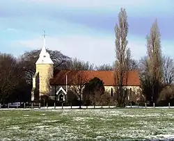 The parish church of North Shoebury, St Mary the Virgin, was given to nearby Prittlewell Priory before 1170, although there is no surviving fabric of this date. The chapel is dated at c.1230, with further additions during the 14th or 15th century. The porch was added in the 18th century, while the church was restored under the designs of William Benton between 1883 and 1885. It is Grade II listed.[4][5] The manor was split into two, under North Shoebury Hall (also known as West Hall), and Kents (also known as Soberia) rebuilt in 1824.[6][7][8][9][10] North Shoebury was known as Little Shoebury, or Shoebury Parva (in Latin Parva Shoberi).[9][11]