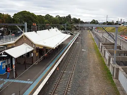 To the east of the station lies a passing loop. This had been taken out of use, but in June 2015 was recommissioned as part of the construction of a dive south of the station as part of the Northern Sydney Freight Corridor project.[5][6][7][8]