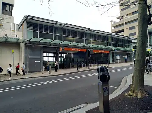 North Sydney railway station is a suburban railway station located on the North Shore line, serving the Sydney suburb of North Sydney, the main Business District on Sydney's Lower North Shore. It is served by Sydney Trains' T1 North Shore Line and T9 Northern Line services.