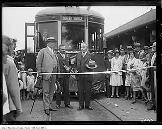 ![]() Tape cutting ceremony at the opening of the North Yonge Railways, 1930 | |