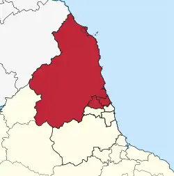 The North of Tyne Combined Authority was a mayoral combined authority which consisted of the local authorities of Newcastle upon Tyne, North Tyneside, and Northumberland, all in North East England.[2] The authority came into being on 2 November 2018 under the statutory name Newcastle upon Tyne, North Tyneside and Northumberland Combined Authority. The three local authorities previously formed part of the North East Combined Authority, which continued to exist covering a smaller area. The two combined authorities cooperated on the North East Joint Transport Committee.[3][4]