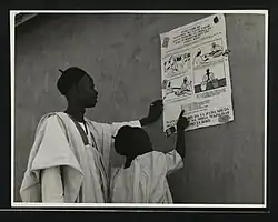 A referendum on becoming part of Nigeria was held in the Northern Cameroons in November 1959.[1] Voters were given the choice between a union with Nigeria and postponing the decision.[1] Voters favoured the latter, with 62.25% voting to postpone the decision.[1] A second referendum was held in 1961, with 60% voting to join Nigeria and 40% voting to join Cameroon.[1]