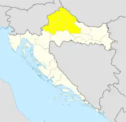 Northern Croatia or North Croatia (Croatian: Sjeverna Hrvatska, pronounced [sjêʋeːrnaː xř̩ʋaːtskaː]) refers to the northern parts of Croatia, encompassing Zagreb, Varaždin, Međimurje, Zagorje and Koprivnica-Križevci counties, including the cities of Zagreb, Varaždin, Čakovec, Krapina, Koprivnica and Križevci.[3] The region is home to the Kajkavian dialect, which some consider to be a separate language of its own.[4] The region borders Hungary to its north-east and Slovenia to its north-west.[5]