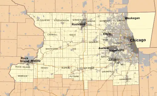 3. ^ "18 Northern Illinois Counties". Regional History Center. Northern Illinois University. Retrieved 4 October 2013.