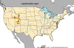 - ^ "Lepidomeda copei (Northern Leatherside Chub)". U.S. Geological Survey. Retrieved 19 November 2017.