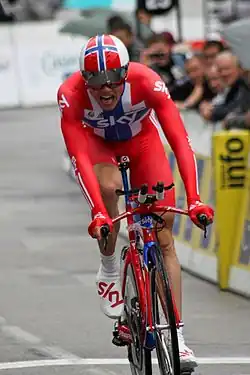 The Norwegian National Time Trial Championships are held annually. They are a cycling race which decides the Norwegian cycling champion in the time trial discipline, across several categories of rider. The event was first held in 1921 and was won by Ole Moen.[1] At the beginning there were often back-to-back wins from many riders. Recent multiple victors have included Edvald Boasson Hagen, Thor Hushovd, Kurt Asle Arvesen and Steffen Kjærgaard. The current champions are Tobias Foss and Ane Iversen.[2]