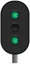 If the yellow light in signal 24 fails, the signal displays a higher speed indication, which would be a wrong-side failure. To prevent this, a current transformer in the lamp circuit monitors the current through the yellow lamp. If the yellow lamp fails, a relay will also switch off the green light and the signal becomes totally dark, which is then treated as "expect stop." A capacitor in the relay circuit ensures that the relay operation is a couple of seconds delayed, to prevent the relay operating for every blink. Hence, if the yellow lamp does suddenly fail, the green light will blink alone 1-2 times before it is switched off by the relay. Note: The animated picture of signal 24 is wrongly giving the impression that the yellow light is shown before the green one. This is not correct: The yellow and green lights are always switched on and off simultaneously, for every blink/flash.