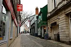 The Norwich Lanes, known locally as The Lanes, is an area of Norwich, a city in Norfolk, England. It consists of a series of mostly pedestrian-oriented small lanes, alleyways and streets. Norwich Lanes is noted for its independent retailers, and eating and drinking establishments. The area also contains some of the city's cultural attractions, including museums, theatres, pubs and bars. As part of a nationwide drive to recognise the importance of the character and individuality of Britain's high streets, and to maintain it, Norwich Lanes won the Great British High Street Awards 2014 in the "City" category.[1][2][3]