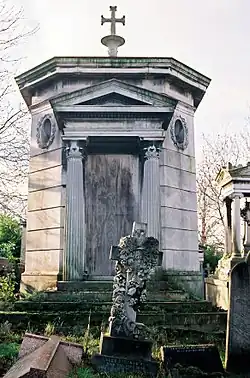 The tomb of James Gilbart, a Grade II listed structure in the cemetery