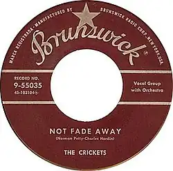 In 1964, the Rolling Stones' cover of "Not Fade Away" was a major hit in the United Kingdom. It was the A-side of the band's first US single.[4]