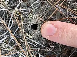 Adults have been observed from September to May. Males are more commonly encountered as the females presumably don't leave the burrow as often. The females have been seen with juveniles in January and May.