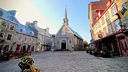 Notre-Dame-des-Victoires (French pronunciation: [nɔtʁə dam de viktwaʁ]) is a small Roman Catholic stone church on Place Royale in the lower town of Old Quebec City. Construction was started in 1687 on the site of Champlain's habitation and was completed in 1723. The church is one of the oldest in North America.