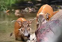 Crocodiles and blood-sucking insects are also part of the forest fauna.[14] Herpetofaunal studies have been conducted in four areas, recording 20 amphibian and 14 reptile species in the southern edge of the park; of these, the frogs include Aubria masako, Amietophrynus regularis, Cryptothylax greshoffii, Hyperolius balfouri, H. brachiofasciatus, Leptopelis brevirostris and L. calcaratus meridionalis.[20]