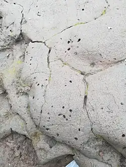 The interior of shell is non-nacreous and whitish. The anterior adductor muscle scar narrow, elongate-triangular; the posterior adductor muscle scar is wide and broadly triangular.[2]