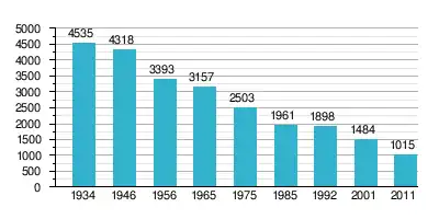 As of December 2017 Novo Selo has a population of 970 people, down from its peak of 4,535 people in 1934. Most inhabitants are ethnic Bulgarians (93%), with a large "Vlach" (Romanian) minority (who declared themselves as Bulgarians) and a few Romani people (7%). An overwhelming majority of the population of the village identify themselves as Christians (95%). Most inhabitants identified as Orthodox Christians belonging to the Bulgarian Orthodox Church.