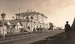 Railway station in Novocherkassk was opened in 1863. The idea of building the railway from Aksay to Alexandro-Grushevskaya (Shakhty) via Novocherkassk was proposed by appointed ataman Mikheil Homutov. Homutov requested the Minister for War of Russian Empire to build this railway line. In his opinion, new railway should solve the problem of delivery of coal from deposits near Alexandro-Grushevskaya to barges on the river Don. This resolution was supported by the imperial decrees of 16 May 1860. Rolling stock, hydraulic cranes and steam engines were purchased in Belgium. The construction and operation of the Grushevsko-Don Railways was managed by a special committee headed by Count Valerian Panaev (engineer).[1]