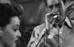 For years, Davis and co-star Paul Henreid claimed the moment in which Jerry puts two cigarettes in his mouth, lights both, then passes one to Charlotte, was developed by them during rehearsals, inspired by a habit Henreid shared with his wife, but drafts of Casey Robinson's script on file at the University of Southern California indicate it was included by the screenwriter in his original script.[12] The scene remained an indelible trademark that Davis would later exploit as "hers".[13] The scene has a similar precedent ten years earlier, between Davis herself and George Brent in The Rich Are Always with Us.[14]