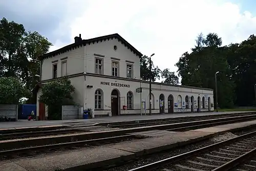 Nowe Drezdenko railway station is a railway station serving the towns of Drezdenko and Strzelce Krajeńskie, in the Lubusz Voivodeship, Poland. The station opened in 1857 and is located on the Tczew–Kostrzyn railway. The train services are operated by PKP, Przewozy Regionalne and Arriva.