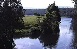 A major landmark in the area is the house Bundanon, which renowned Australian artist Arthur Boyd and his wife Yvonne donated to the people of Australia in 1993 along with an adjoining property that had been previously owned by Boyd's brother-in-law, the equally famous Australian artist Sidney Nolan.[7][8] Bundanon began as a single-storey weatherboard structure built around 1840. In 1866, a two-storey sandstone house, made of locally quarried stone, was built immediately in front of the original weatherboard house. The sandstone house features timber verandas and is now listed on the Register of the National Estate.[9]