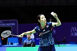 Nozomi Okuhara (奥原 希望, Okuhara Nozomi; born 13 March 1995) is a Japanese badminton player. A former World's number 1 in the BWF rankings for the women's singles, she is well known for her speed, agility and endurance. She won a bronze at the 2016 Summer Olympics,[3] and gold medal at the 2017 World Championships.[4]