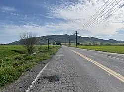 ![]() Nuevo, California. Distant view of snow-capped San Gabriel Mountains from Nuevo Road. | |