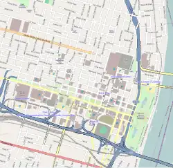 12th Street, later 12th Boulevard, is now officially known as Tucker Boulevard, renamed for former Mayor Raymond R. Tucker. It is double sized and serves as the border between Downtown and Downtown West.