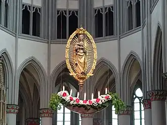 ![]() 1530 sculpture of Mary in the Altenberger Dom, decorated in the Marian month of May | |