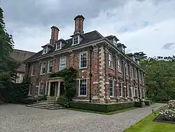 Also in the gardens is an unusual vernacular carved stone, possibly of the 19th century, topped by a 14th-century finial.[15] In the corner of the garden is an early-18th century pavilion, built of brick, with an ogee-shaped lead roof.[16]