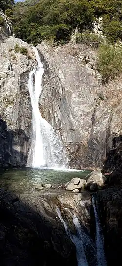 Nunobiki Falls (布引の滝, Nunobiki no Taki) is a set of waterfalls near downtown Kobe, Japan, with an important significance in Japanese literature and Japanese art. In Japan, Nunobiki is considered one of the greatest "divine falls" together with Kegon Falls and Nachi Falls.