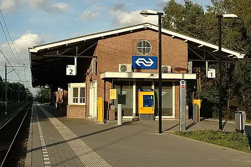 Nunspeet is a railway station located in Nunspeet, Netherlands. The station was opened on 20 August 1863 and is located on the Amersfoort–Zwolle section of the Utrecht–Kampen railway (Centraalspoorweg). The services are operated by Nederlandse Spoorwegen.