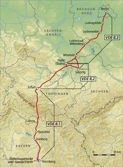 22. ^ "Neuer Bauabschnitt im Großprojekt Nürnberg-Berlin (VDE8) beginnt" (Press release) (in German). DB Mobility Logistics AG. 28 October 2011.