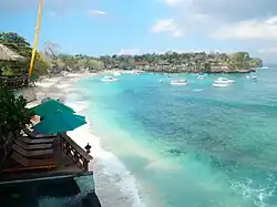 It is connected to Nusa Ceningan Island through a narrow suspension bridge who collapsed in 2016 and rebuilt.[16][17]