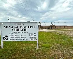 Nuyaka is a populated place in Okmulgee County, Oklahoma, United States. It is approximately 7.4 kilometres (4.6 mi) south-southwest of Beggs and is west of the city of Okmulgee off SH-56. The Old Nuyaka Cemetery and the Nuyaka Mission site are southwest of town.[1][2] The elevation is 735 feet (224 m) and the coordinates are latitude 35.653 and longitude -96.14.[3] It was notable as the center of traditionalist opposition to the Creek national government during the late 19th century.